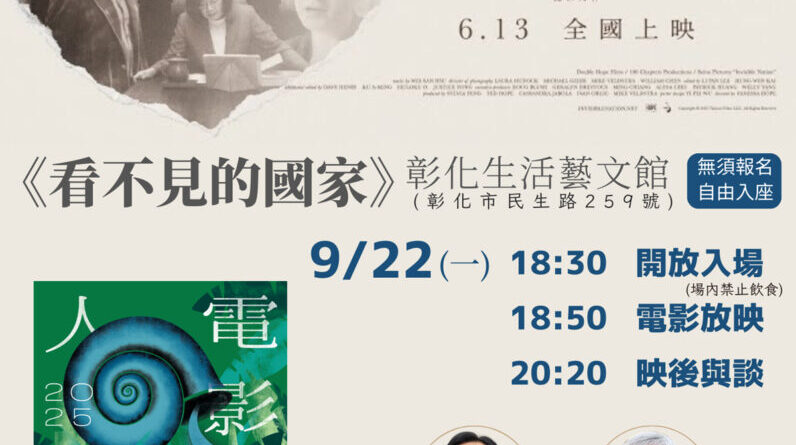 彰化首場《看不見的國家》9/22放映 人權電影節首見證民主力量