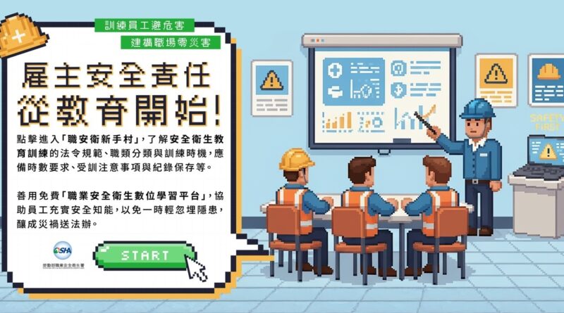 為提升中小企業雇主對職業安全衛生的重視,並協助企業有效落實安全教育訓練,勞動部職業安全衛生署(以下簡稱職安署)於12月05日推出全新宣導影片。影片大膽突破傳統宣導框架,採用「復古電玩」視覺風格與第一人稱視角,模擬雇主在工地現場面臨的決策挑戰。透過趣味的任務闖關機制,引導雇主體認依規辦理教育訓練的重要性,共同打造零災害的職場環境。
